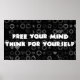 "Liberte sua mente, pense por si mesmo." Não deixe igrejas, instituições, ou qualquer outra pessoa fazer o seu pensamento por você. Você tem uma mente. Use-o.