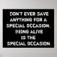 Nunca salve nada para uma ocasião especial. Estar vivo é a ocasião especial. ~~~PosterPrint~~~~