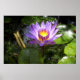 Uma bela imagem de uma lilly roxa e amarela numa lagoa.