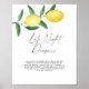 Cartão de chá de fraldas neutro com cor d'água em forma de limão, com aspecto neutro do gênero, com ilustração de um limoeiro com as frutas dos citrinos. Use as ferramentas de design para editar o texto, alterar a cor e o estilo da fonte para criar um design de convite exclusivo. Itens correspondentes disponíveis.