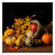 Esta bela imagem de vida de uma cornucopia cheia de abóboras, maçãs e abóboras é certamente uma bela peça de arte em sua casa durante os meses de outono.