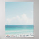 Foto divertida que mostra um dia na praia com céus azuis brilhantes e água turquesa limpa.