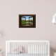 Esta poster apresenta um belo campo de golfe através de uma janela aberta.
