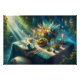 Mesa Nowruz persa em blues e verdes com flores e lanternas.