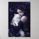 Linda Mulher Gótica e Poster de Gato Branco. © Desejos do Coração Escuro. Esta poster tem uma linda mulher gótica com cabelo roxo que está abraçando seu gato branco entre flores e borboletas.