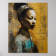 uma linda mulher num jornal e fundo de tinta amarela AI gerou pintura mestiça