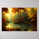 Belo Ouro paisagístico outono Árvores lago calmo poster