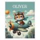 A aventura ruge para a vida! Este pôster brilhante apresenta um filhote de tigre ousado e adorável pilotando um avião encantador através de nuvens fofas. Personalize com um nome para uma decoração vibrante e inspiradora que acende sonhos e ilumina qualquer sala. Impressão de alta qualidade garante cores vivas e um brilho cativante.