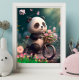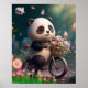 Poster Lindo Panda andando de Bicicleta com flores Arte