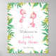 Dê as boas-vindas aos seus convidados com estilo com nosso encantador letreiro de boas-vindas para chá de bebê tropical, apresentando dois deliciosos flamingos rosa que adicionam um toque divertido à sua celebração. Perfeito para qualquer chá de bebê, especialmente para aqueles que esperam gêmeos, este pôster atraente apresenta um fundo branco crocante adornado com uma fronteira exuberante de folhas de sempre-verde em tons variados de verde. Personalize o letreiro com o texto escolhido em letras elegantes cinza e rosa, tornando-o um centro de mesa único que define o tom para um evento memorável. Celebre a chegada dos seus pequenos com este adorável acréscimo à sua decoração! Ilustrado e projetado por Patricia Alvarez.