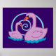 Esta ilustração graciosa e delicada do cisne apresenta dois bonitos cisnes roxos nadando com longos pescoços e olhos violetas! Este design de arte do vetor de cisne bonitinho é na moda e adorável juntando água com uma espiral azul clara no fundo criando um sereno e um efeito calmante. Esta arte de cisne é o presente perfeito para comprar para qualquer um que ama cisnes, galinha d'água, pássaros e belíssima arte original elegante!