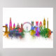 Rainbow Bright, de Londres, por Fab Funky. Possui marcas famosas de Londres em estilo aquarela usando um arco-íris de cores.