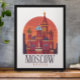 Atordoante e única poster de Moscou Rússia Skyline mostrando as famosas visões e prédios da capital russa. Faz um presente de lembrança excelente para todos os turistas e russos e todos os amados. Compre o seu hoje. Incrível ideia de presente do Kremlin no aniversário ou no natal.