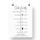 Esta placa de calendário de casamento apresenta um arranjo atraente de eventos. Lindos gráficos de linha do tempo preto e branco de aquarela e elegantes embelezamentos de caligrafia manuscritos para este design.