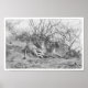 Uma bela imagem monocromática (filmada em 1979) de um pacote de leões fêmeas em um Papel de 12" x 8" Archival Heavyweight (Matte).