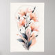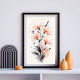 Lírios graciosos de tona escamoteada florescem em uma composição leitosa, sem peso, moldada por um delicado halo circular, sugerindo reverência celeste ou um emblema botânico sagrado. O estilo translúcido de aquarela e os toques de uísque criam um senso de calma, enquanto os tons suaves de coral, pêssego e carvão profundo oferecem contraste e equilíbrio. A adição do halo geométrico por trás das flores dá a esta peça uma qualidade espiritual, quase ritualística, fazer que ela se sinta como um ícone floral moderno — perfeito para decoração mínima, mas emocionalmente rica.