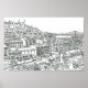 Desenho de tinta feita à mão de Lisboa em estilo gráfico