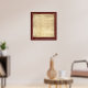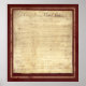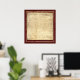 Imagem da Carta de Direitos sobre fundo texturizado vermelho profundo. Apresentação correspondente da Declaração de Independência disponível.