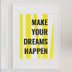 Traga positividade e energia para o seu espaço com esta moderna impressão de arte motivacional. Apresentando uma tipografia negra ousada sobre fundo listrado amarelo e branco vibrantes, esta design faz uma poderosa declaração: "Faça seus sonhos acontecerem." Perfeito para escritórios domésticos, dormitórios, estúdios criativos, ou como presente inspirador para estudantes, empreendedores e sonhadores. Esse design contemporâneo adiciona um pop de cor e um lembrete diário para se manter focado e motivado. Disponível em vários tamanhos e opções de enquadramento, é a peça de sotaque ideal para qualquer um que ama a decoração moderna, que eleva o seu lar.