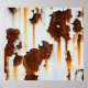Fundo de metal branco corroído. Parede metálica pintada branca e ruidosa. Fundo de metal enferrujado com listras de ferrugem. Manchas de ferrugem. A superfície de metal enferrujou manchas. Corrosão de centeio. Pumpkins agradeça triângulos geométricos em um padrão antigo. A geometria da pumpkin encontra o decor artístico, um retrô-encontro! ferrugem, enferrujada, corrosão, metal, ferro, aço, textura, fundo, superfície, corroído, pintura, decaimento, abandonado, material antigo, curado, envelhecimento, diversidade, oxidação, antigo