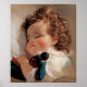Doce criança dormindo com a boneca. Presentes de arte para amantes da Vintage e da Nostalgia
