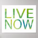 LIVE AGORA dizendo em padrão azul e verde de aquarela para nos lembrar de viver no agora, viver no presente, viver no momento. Um ditado inspirador para a filosofia do pensamento e prestando atenção à experiência presente.