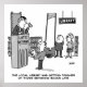 Engraçado cartoon de um homem que devolve um livro da biblioteca à sua biblioteca local, só para descobrir que a pena pelo atraso aumentou drasticamente. Presente para um bibliotecário, talvez. A ilustração mostra a pena de morte por guilhotina. O juiz está vestindo um boné negro no tribunal. Humor legal.