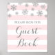 Por favor, assine nosso pôster de livro de presença para chá de bebê, chá de noiva ou casamento com flocos de neve prateados e rosa claro, perfeito para um chá de bebê de inverno ou Natal.