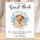 Inclua seu melhor cão, melhor gato e qualquer animal de estimação no seu casamento com este convite personalizado de livro de visitas de fotos de animais de estimação. Perfeito para os amantes de cães, e um livro de visitas de cães será um sucesso no seu casamento. Simples moderno branco com folhas de eucalipto.