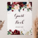 Este livro de visitas de flores de outono ilustrado com aquarela é perfeito para um casamento simples ou chá de noiva. O design apresenta rosas e peônias artísticas pintadas à mão em azul-marinho, burgundy, vermelho e rosa, com folhas verdes elegantes, inspirando a beleza colorida e idílica do outono.