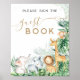 Poster Livro de visitas do chá de bebê Safari Bebês Anima