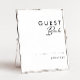 Este livro de visitas de minimalista moderno é perfeito para o seu casamento boho sofisticado. Seu design abstrato simples e único, acompanhado por uma fonte minimalista contemporânea e uma paleta de cores preta e branca, dá a este produto um sentimento de luxo formal elegante, mantendo-se simples e chique boêmio. Deixe-o como está ou personalize-o com arte ou gráficos de sua escolha. Você também pode olhar para outros produtos dentro desta coleção para unir todo o seu casamento!