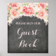 Por favor, assine nosso pôster de livro de visitas para chá de bebê, chá de noiva ou casamento em um padrão de quadro negro com flores de aquarela rosa claro vintage. Perfeito para um chá de bebê, casamento ou chá de noiva.
