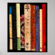 Este poster de fotografia de arte apresenta uma prateleira de livros coloridos. Eles formam uma interessante composição geométrica abstrato vertical em cores de vermelho, azul, verde, amarelo, roxo, bege, bronzeado e preto. A imagem fotográfica original foi digitalizada para criar um efeito pareado.