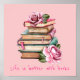 A vida é melhor com o slogan dos livros com uma ilustração colorida e fofa da educação e dos livros no estilo da ilustração dos desenhos animados. Este poster romântico de livros cor-de-rosa seria perfeito para iluminar uma sala de aula, uma área de biblioteca, uma sala de livros, uma sala de estudo ou uma sala de criança. Perfeito para um rato de biblioteca!