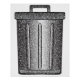Uma lata de lixo metálico com textura digital brilhante.