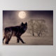 Um lobo caçando numa noite de lua de cheio.