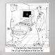 Uma pessoa num banheiro com apenas um teclado e monitor dizendo, "Se você me perguntar, eles estão carregando o local de trabalho virtual um pouco longe demais."