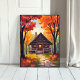 Log Cabin | Fall Foliage Forest Watercolor Poster