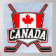 Legal design para fãs e jogadores de hóquei no gelo! Esta é uma bandeira canadense em um escudo, com um pergaminho através dela com o texto dentro do 'CANADÁ', e varas de hóquei cruzadas atrás do escudo.