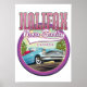 Logotipo da viagem da Halifax Nova Scotia com um carro clássico bonito.