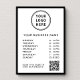 Horas profissionais modernas de poster de operação para a sua empresa. Carregue seu logotipo e código QR para que os clientes pesquisem uma lista de seus produtos, serviços, preços ou outras informações. Adicione o nome da sua empresa, horas de operação ou outro texto em tipografia simples.