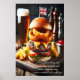 Responda ao chamado de delícia com este Corajoso Burger de Londres. Uma espessa peça de carne angus, grelhada à perfeição, é tocada com queijo cheddar envelhecido, anéis de cebola crocantes, e uma generosa garoa de molho HP, todos aninhados dentro de um pão muffin inglês tostado. Uma pequena bandeira britânica adiciona um toque ao espírito de Londres, enquanto um pano de fundo de uma pinta de cerveja completa esta experiência clássica de pub.