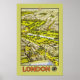 Ilustração aérea de viagens vintage de Londres, mostrando Parlamento, Big Ben, Rua James Park e Buckingham Palace. Um poster de viagens Ferroviário Ocidental Excelente.
