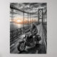 Poster Lone Biker Crosses Suspension Bridge City Skyline