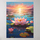 Lotus Serenity no Sunset: Blooms se desdobram sob matizes quentes, capturando harmonia serena. Elevem seu espaço com esta arte tranquila de parede.