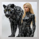 Loura de terno preto de látex ao lado de uma pantera preta
