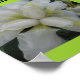 fotos de flores e berrys em fundo verde claro com borda verde escura.