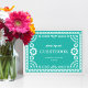 Esse elegante, porém moderno, carpintor picado inspirado na recepção de casamento apresenta um belo quadro de ornamentado em branco, um fundo aquático colorido e uma tipografia festiva. Personalize este modelo como um sinal de mesa para obter favores, guia, menu, buffet, etc. O tamanho padrão é de 5" x 7", que ajustado o excelente em um quadro de foto de tamanho padrão que pode ser colocado em uma mesa. Esta elegante, porém moderna design é uma escolha fabulosa para um casamento de Latinx ou para o casamento de destino do México. Todo o texto é personalizável, basta clicar no botão "personalizar" para o texto. Veja a coleção para mais peças de coordenação!