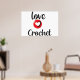 Crochet Poster branco com letras grandes, pretas e vermelhas, com coração. ideia de excelente para o seu artesanato ou escritório. Dar uma ideia para um criador que adora crochê.